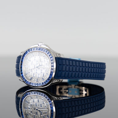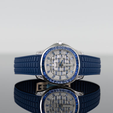 Patek Philippe 5268/461G Aquanaut 38.8mm White Gold Paved with Baguette Cut Diamonds and Sapphire