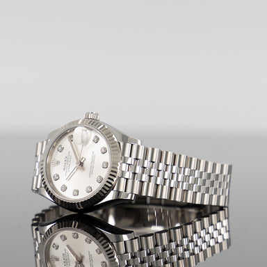 Rolex Datejust 31mm Steel Silver Diamond Dial Fluted Bezel Jubilee 278274