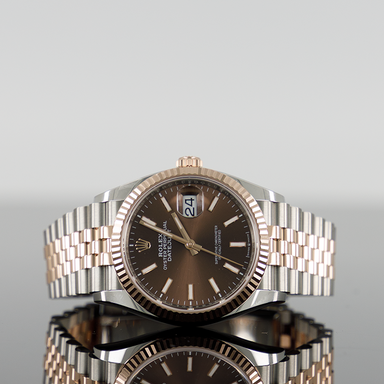 Rolex Datejust 36mm Steel and Rose Gold Fluted Chocolate Index Dial 126231